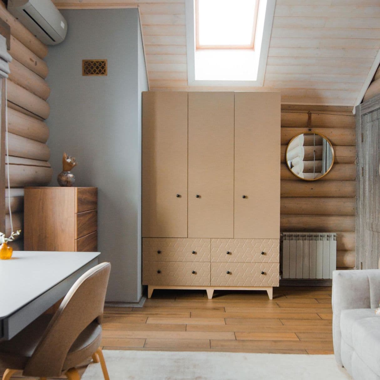 Этот интерьер в американском стиле создан для гостевого дома с банным комплексом в Екатеринбурге. Дом, выполненный из ручной рубки кедра, предлагает уют в каждой детали.